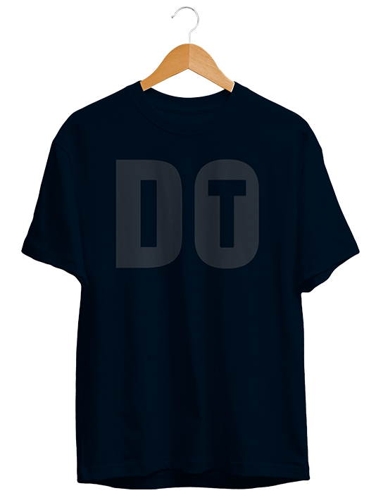 Half sleeved Black and Deep Blue colour T-shirt. Not too loose. Not too tight. A size that is just the right fit for you.